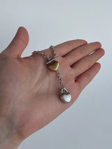 A modern chain necklace featuring gold and silver heart pendants, creating a bold yet romantic layered look.